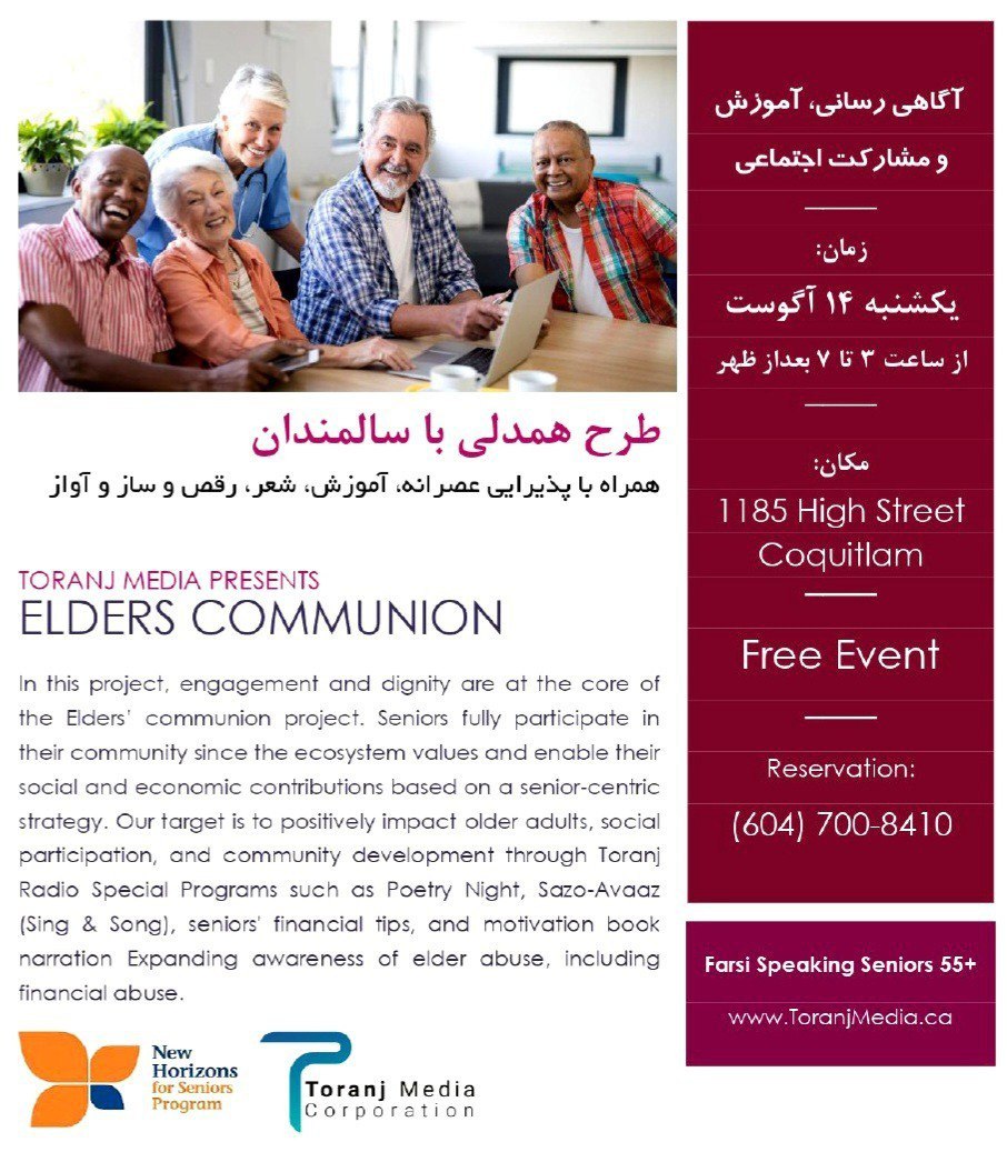 Toranj Media is pleased to announce that we have received funding under the Government of Canada’s New Horizons for Seniors Program for our project Elders Communion project.
